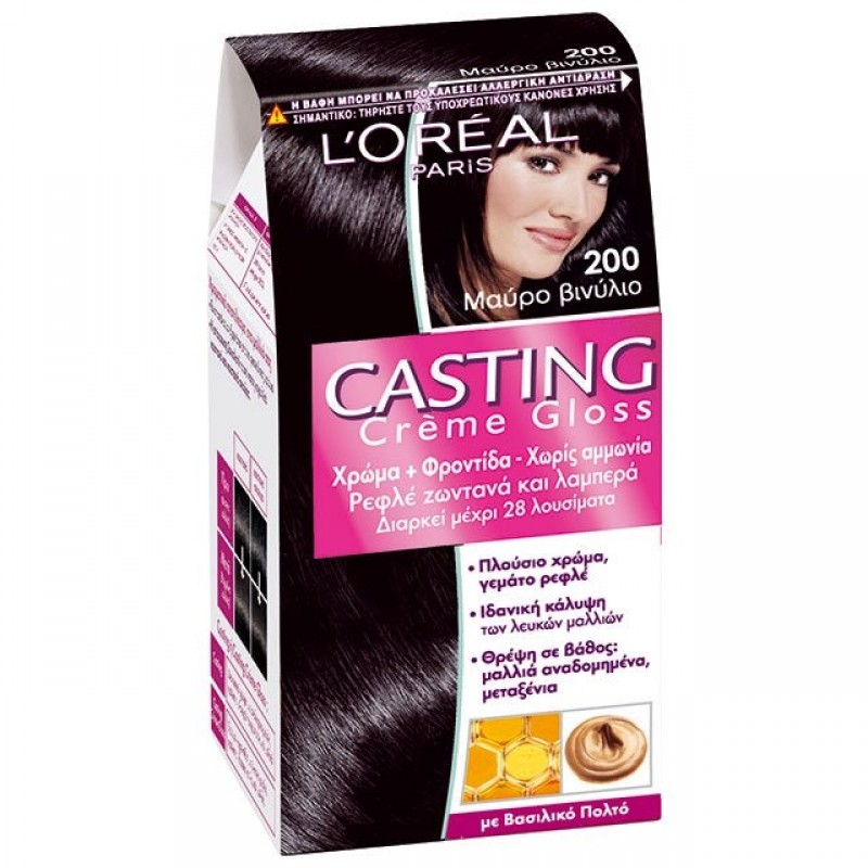 Η Casting Crème Gloss είναι μια βαφή χωρίς αμμωνία που θα χαρίσει στα μαλλιά σας ιριδίζουσα, αστραφτερή λάμψη, καλύπτοντας πλήρως τα λευκά. Περιποιηθείτε τα μαλλιά σας με μια ολοκληρωμένη θεραπεία ομορφιάς, για πλούσιο, φυσικό χρώμα και εκτυφλωτικά αστραφτερή λάμψη.
