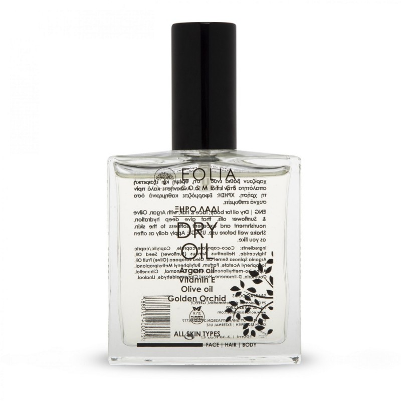 Ξηρό λάδι με βιοσπάμενο φορέα φυτικής προέλευσης υψηλής καθαρότητας με έλαια από Αργκάν , Ελαιολάδο και Ηλίανθο για σώμα, πρόσωπο , μαλλιά.