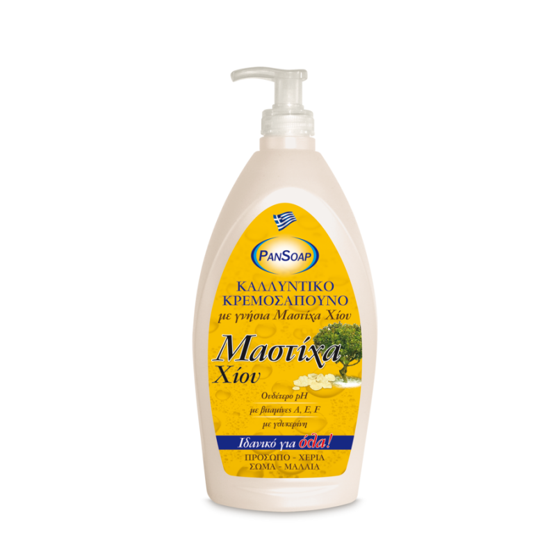 Το νέο καλλυντικό κρεμοσάπουνο PAN SOAP με μαστίχα Χίου, γλυκερίνη και βιταμίνες A, E, F, είναι κατάλληλο για όλους τους τύπους δέρματος και μαλλιών.